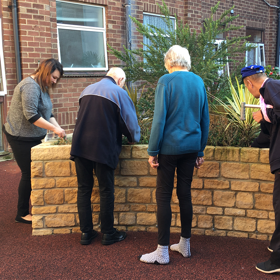 Our open and secure courtyard area, with falls-safe flooring provides year round access to fresh air and our beautiful raised plant areas, all of which are cared for by our residents.